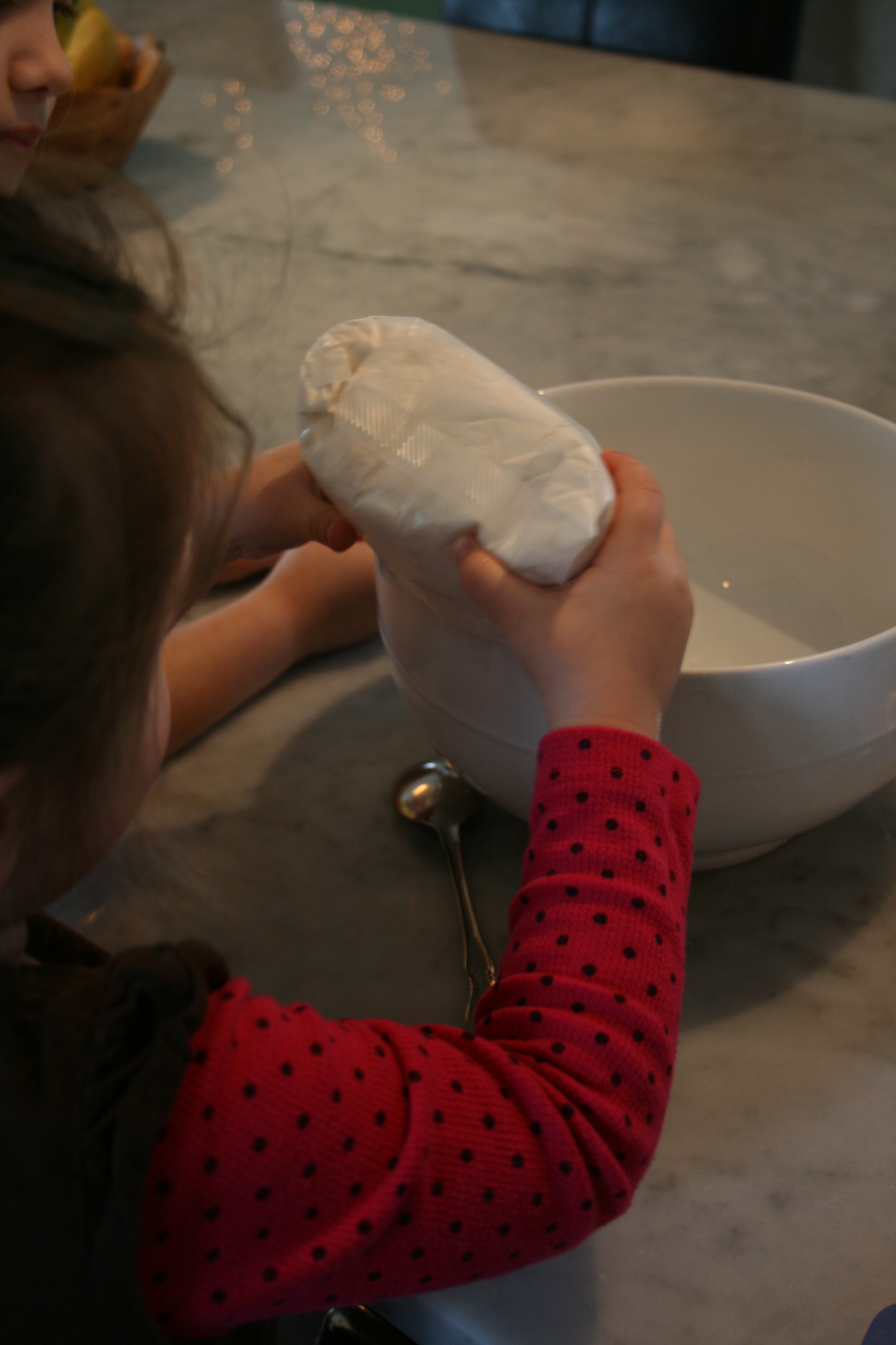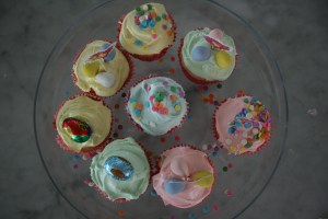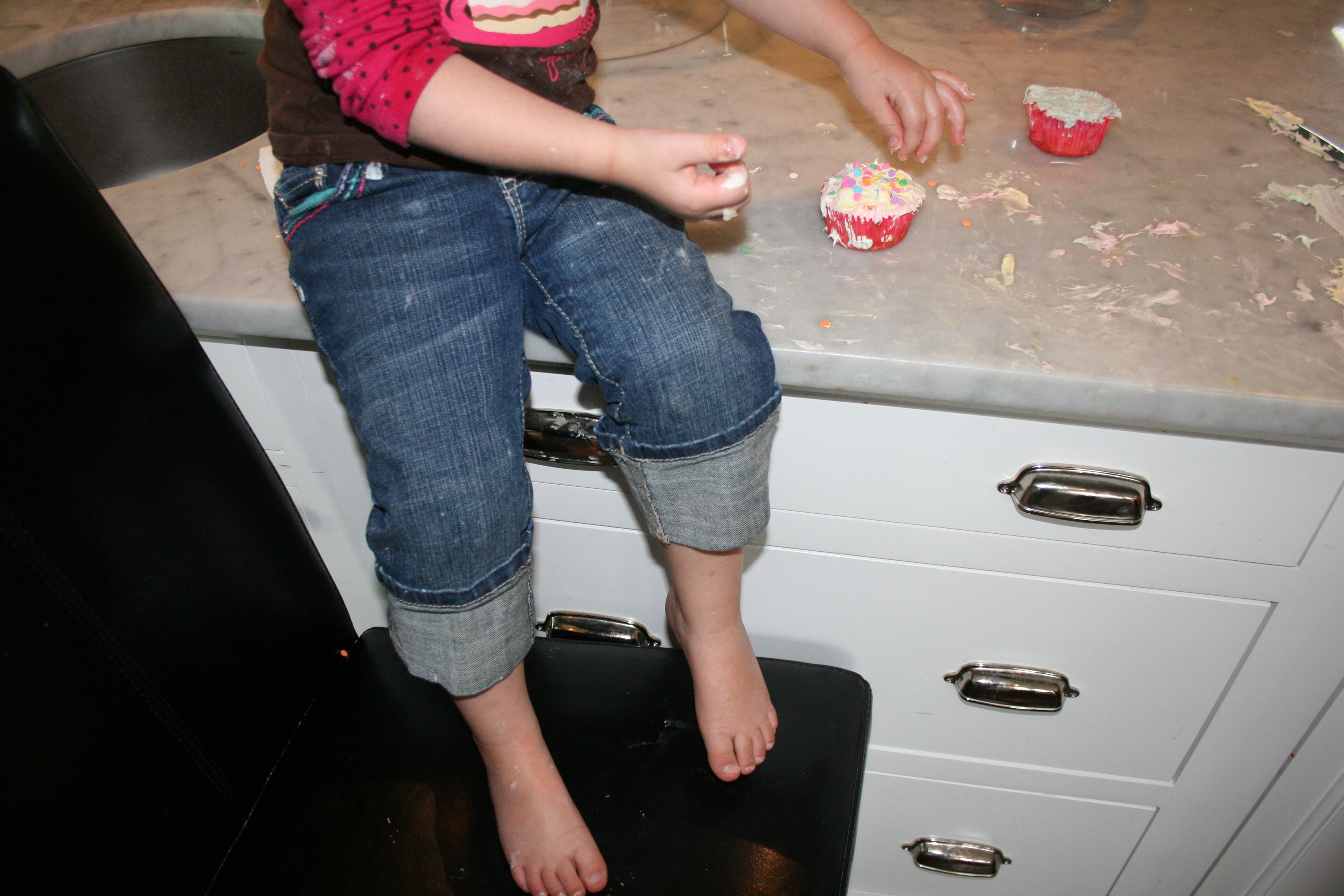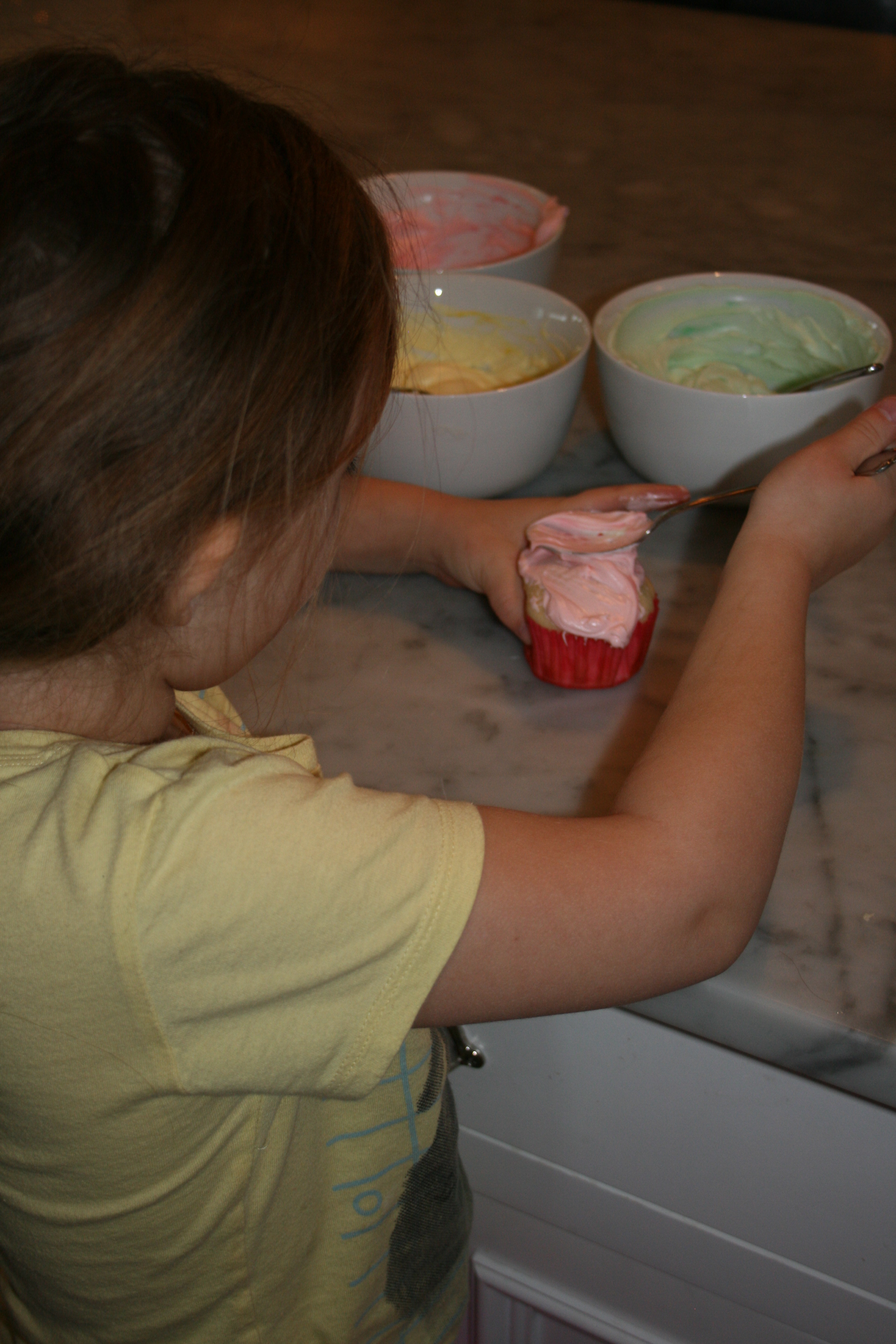 Because CuPcAkEs are so “in” at the moment, I thought I would get my helpers and we would make some.  I just didn’t have a lot of time to make them from scratch so I bought a mix and frosting in a can.  (My helpers did not mind a bit!)
