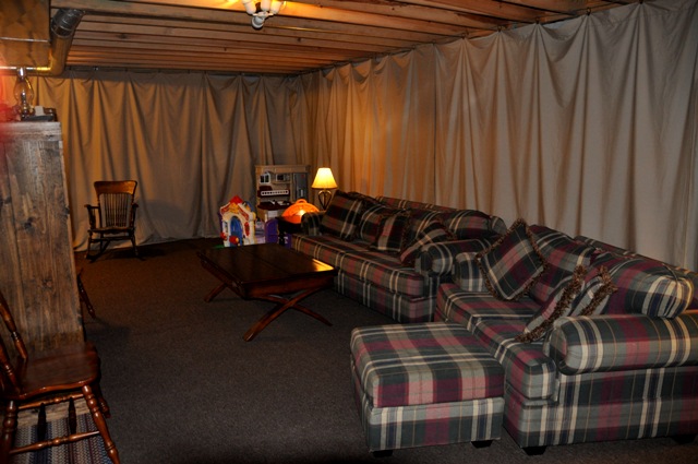 As you can see, I hung sheets for the “walls” so if it floods again I can pull off the sheets and take them outside to dry (or wash them!)