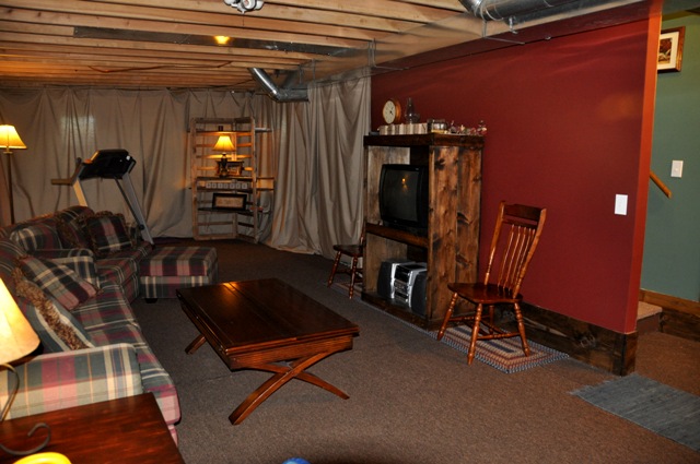 I wanted to come up with a cHeaP way to make our basement a more functional and inviting living space, but something that would make another flood less devistating. I was able to transform the space on a budget with the help of these items: