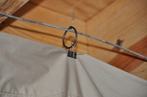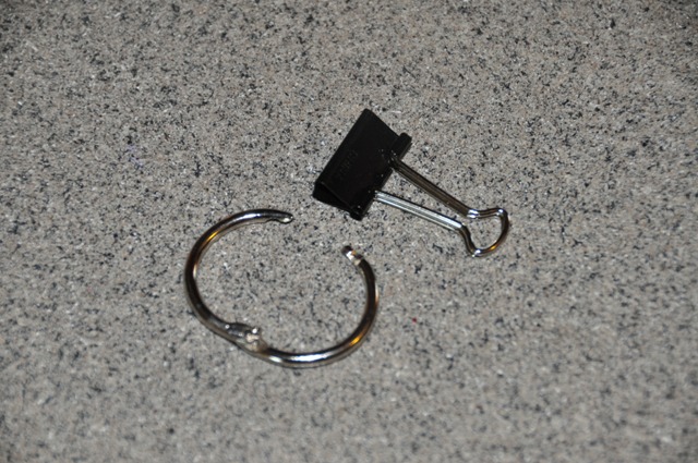 See these binder rings and clips? I spray painted these a dark brown and used these to hang my sheets!