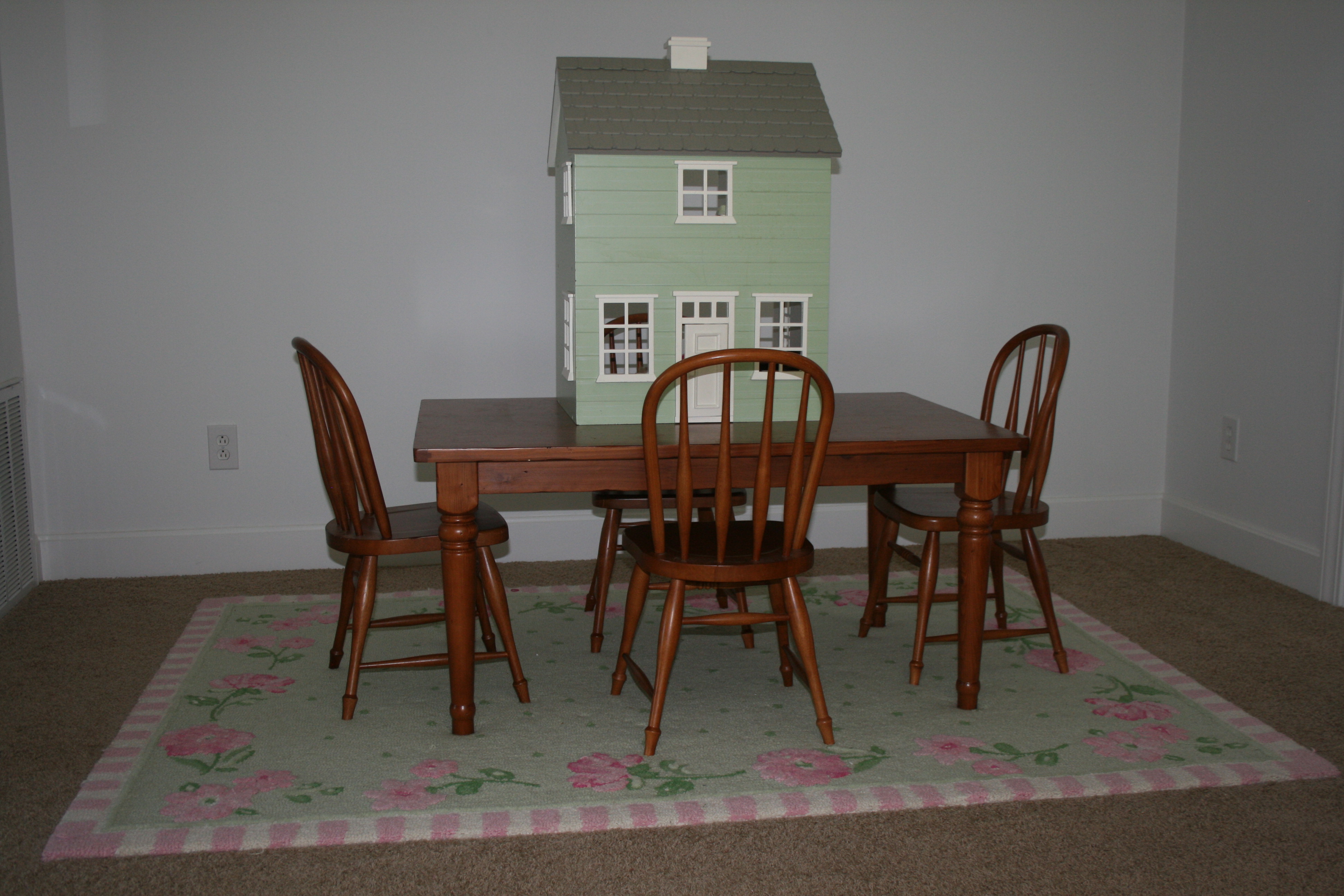 This TabLe & cHaiRs, rUg and DollhOusE I found at a Potterybarn Kids store.  And best of all, they were all floor models.  I was able to get a 50% DisCouNt on the table & chairs and rug, as well as a 40% discount on the dollhouse.  I found all these buys in the summer and instantly I had a head start on my Christmas shopping!