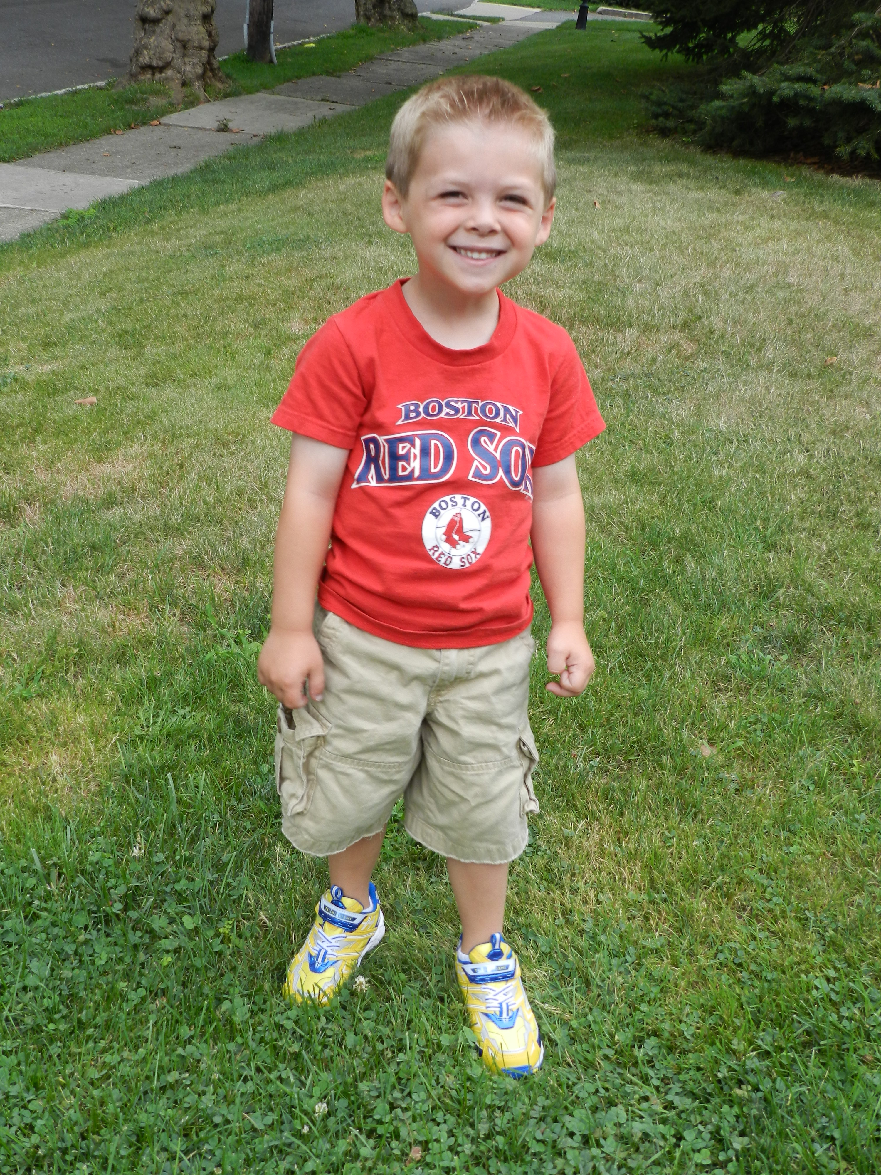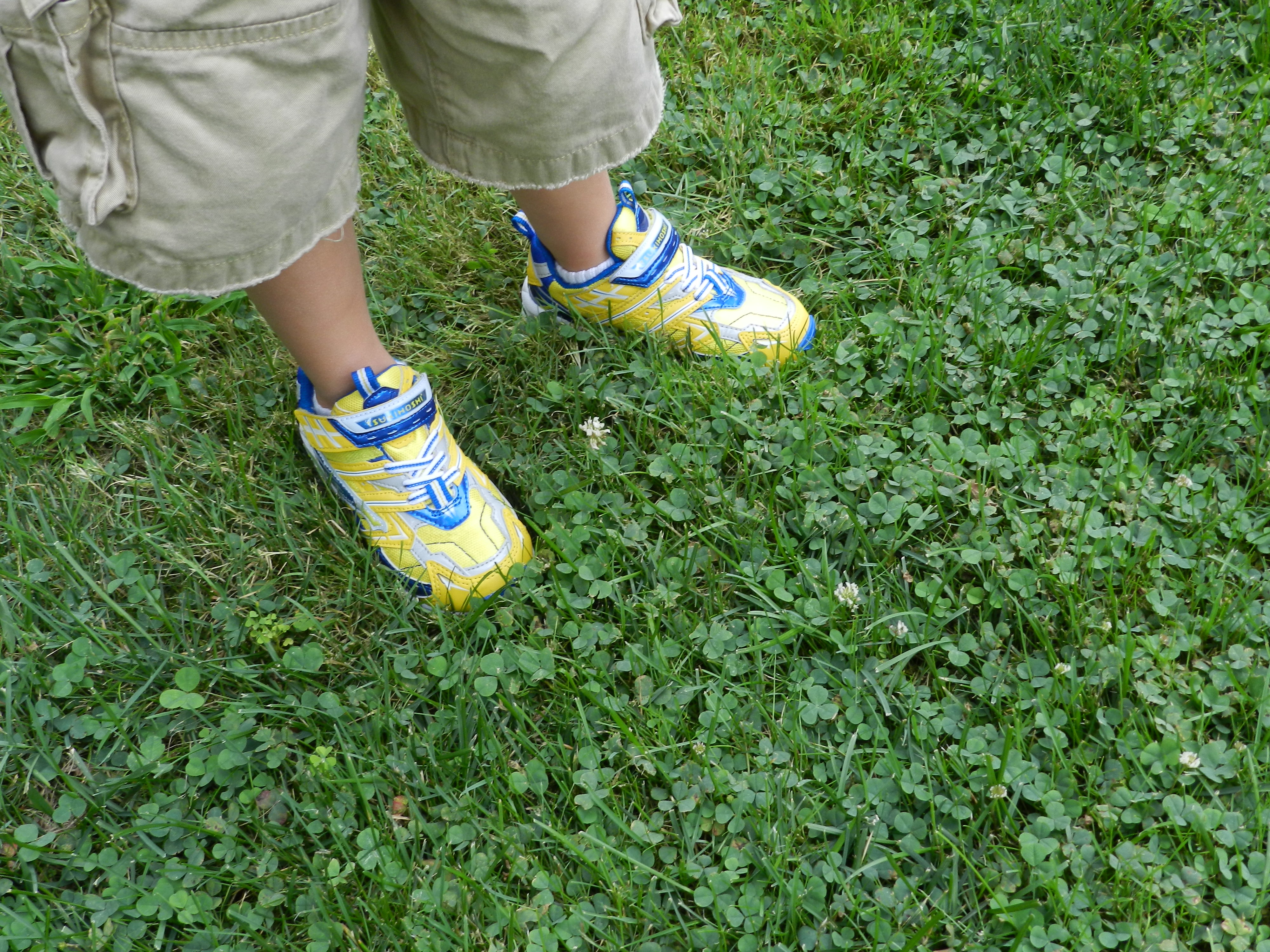 I’ll admit it…I’m one of those “MaTcHy MaTcH MoMs that loves to have everything coordinate.  I love dressing my 2 year old daughter up in outfits with matching hair BoWs, socks, shoes, bracelets…the whole NiNe YaRdS!  You can say flying by the seat of my pants in NOT in my vocabulary.  I’ve always loved picking clothes out for my kids and have never had an issue until the other day when I took my 4 year old son shopping for his BaCk-To-ScHoOl sneakers.  For days he was saying he wanted blue and yellow sneakers which I figured would be no problem.  I envisioned a SnEaKeR with some navy and a little mustardy yellow accent that could easily match his wardrobe.  Needless to say what he picked out was far from the understated running shoe I had in mind.  However, the look on his face when he tried them on was PRICELESS.  I took a deep breath and bought the sneakers that my son had so proudly picked out all on his own.
