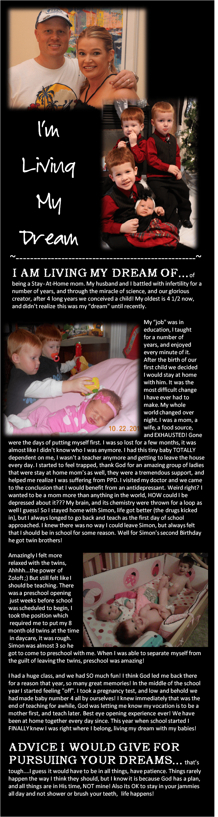 I am also thankful for that same group of stay at home mom’s!!! The daily walks with our crazy group of little ones and all the heart to heart conversations we had. Thank you ladies- you know who you are! Great job Kim. I am proud of you!