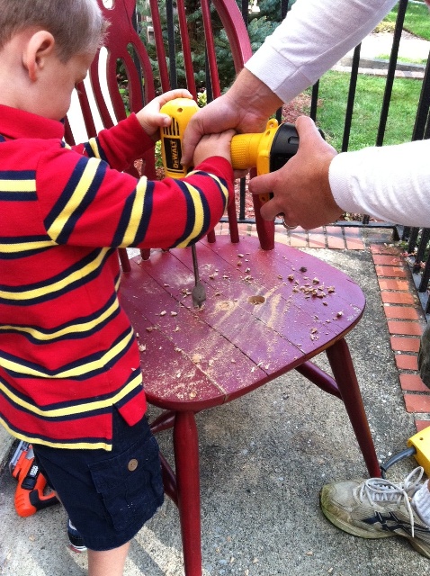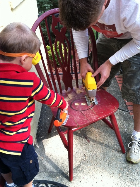 I drew a CiRcLe in the middle of the chair that would be big enough to fit my flower pot without it falling through the hole.
