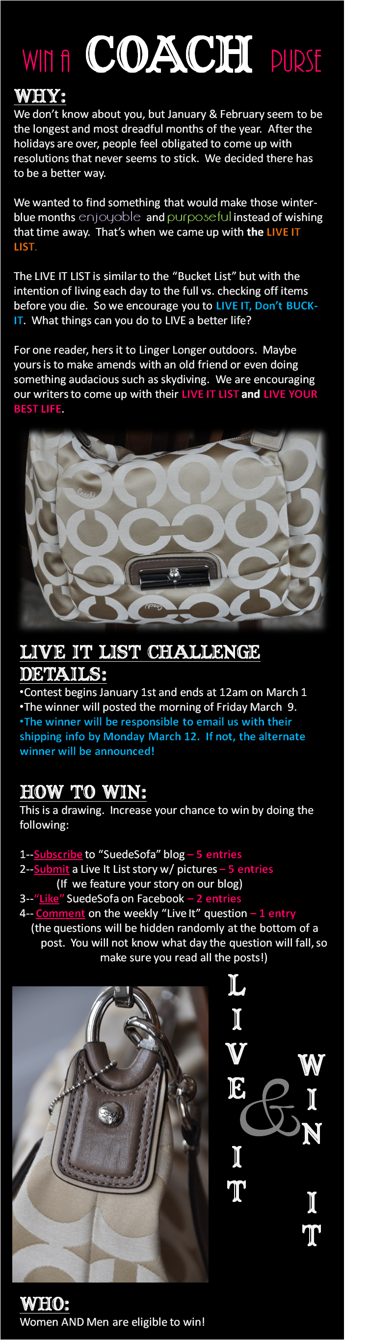 2. Linda! That is so cool! I didn’t know that about you–and what fun moments I’m sure you gals have (great memories you make I’m sure!). You’ll have to stay tuned as we will be asking more about people’s “live it list” items. Looking foward to hearing more of yours!