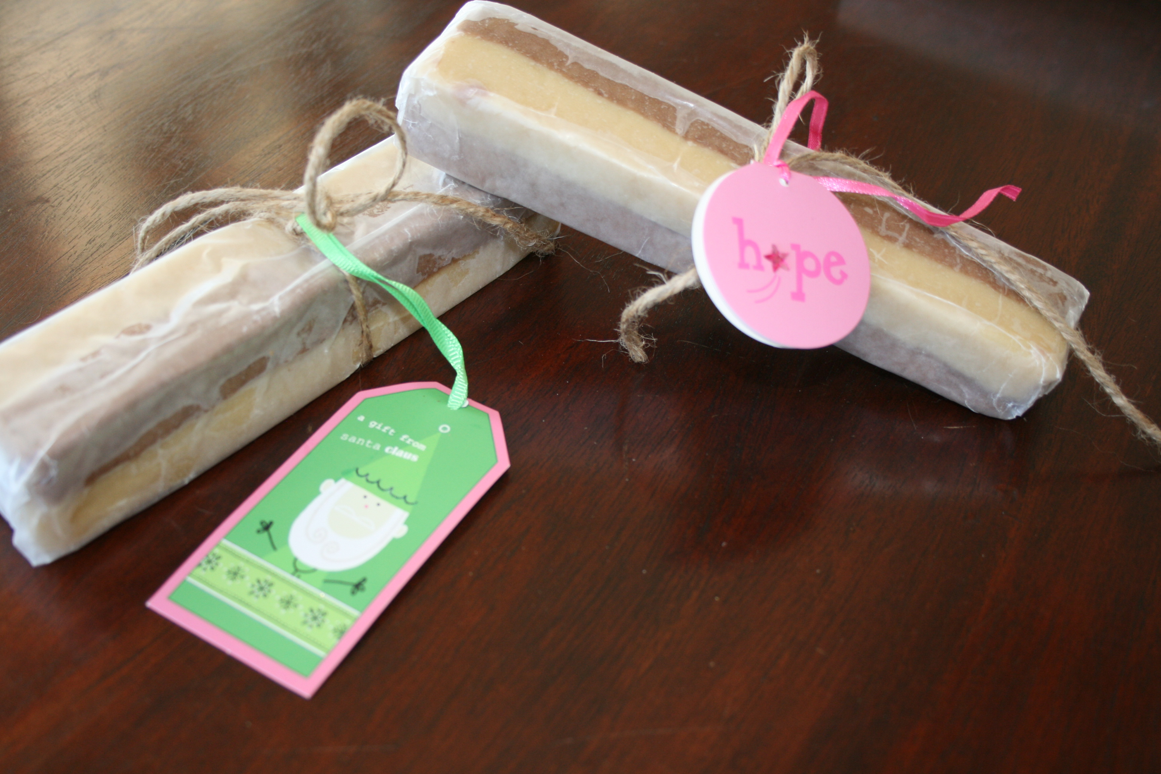 This cookie dough (or whatever cookie dough you prefer) can be given as a Christmas gift! Just wrap in wax paper (parchment paper doesn’t allow tape to stick to it) and attach a Christmas gift tag containing the kind of cookie dough and baking directions! (If your cookie dough contains raw eggs, make note of that on the instructions.)