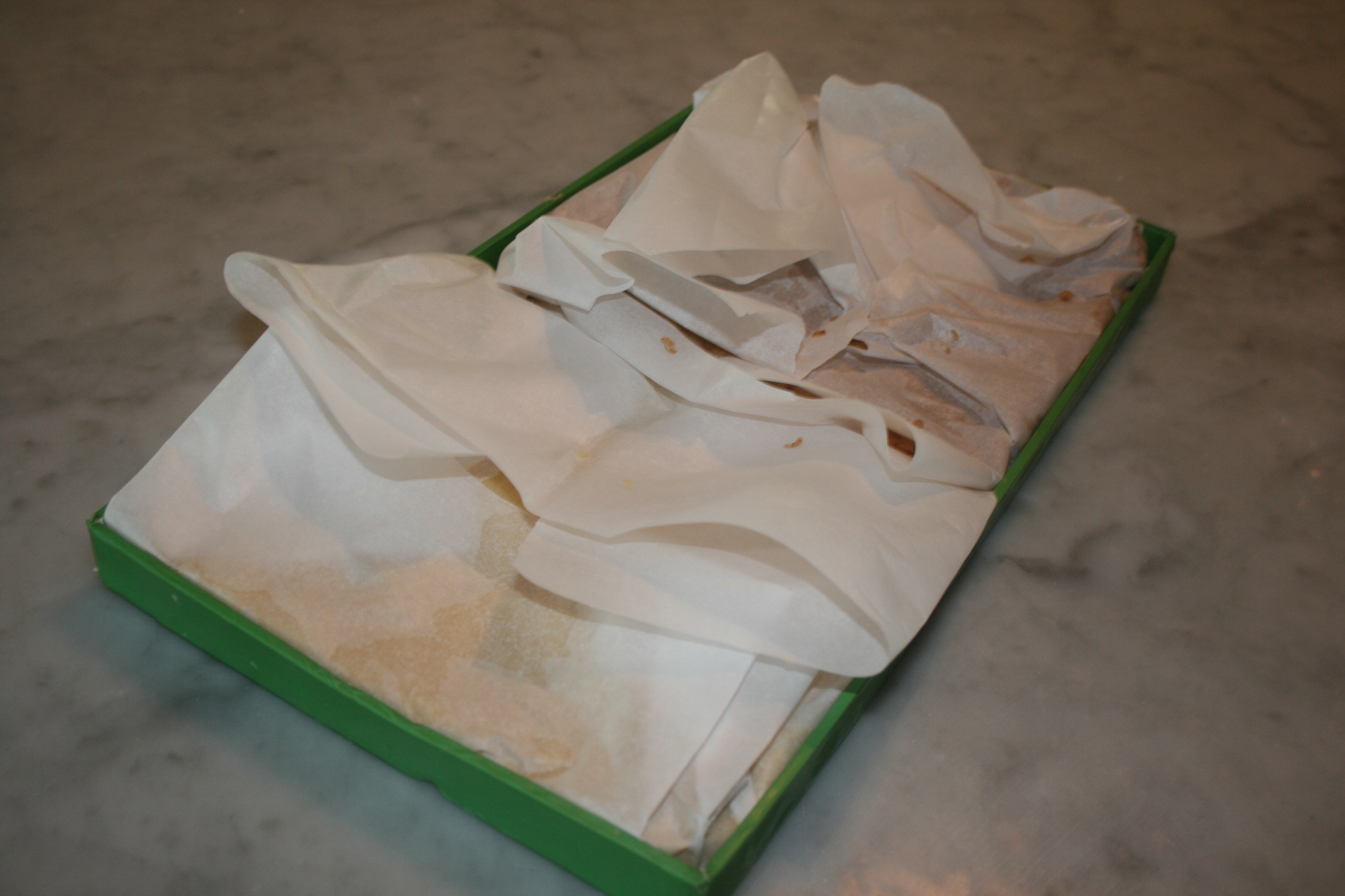 Press each batch of cookie dough into half of a shoe-box lid lined with parchment paper. Refrigerate.