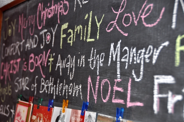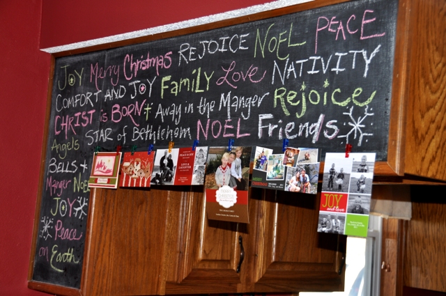 And for the holidays, it can really add CoLoR to the room by simply using different colored chalk!  I will need to clear some more space as we recently received much more Christmas mail to display!