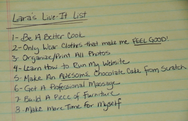 1. Awesome list you have there! I completed mine yesterday and I came up 27 since I will be 27 next year. Have fun “Living it” in 2012! :)