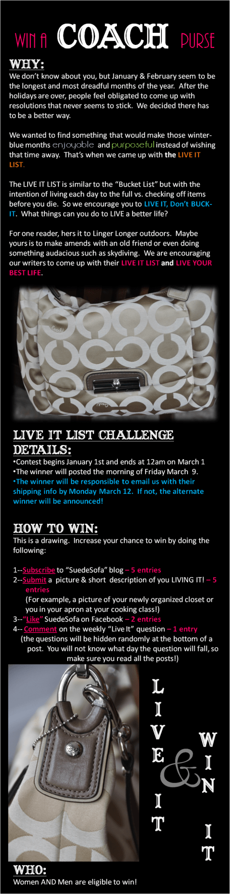 The Live-It list challenge if finally here!! Increase your chance to win the purse by doing the following right now!