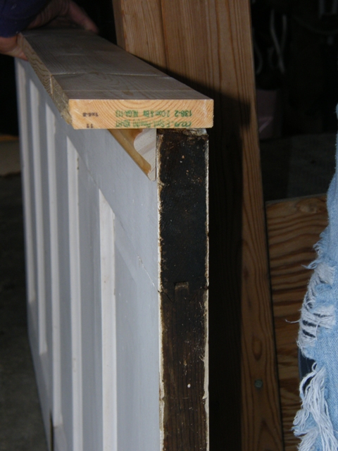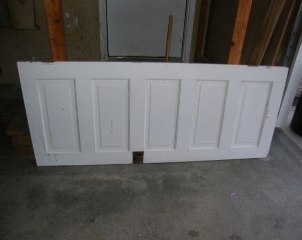 First, I took off the hardware & Doug cut one end of the door off to make each side the same length.