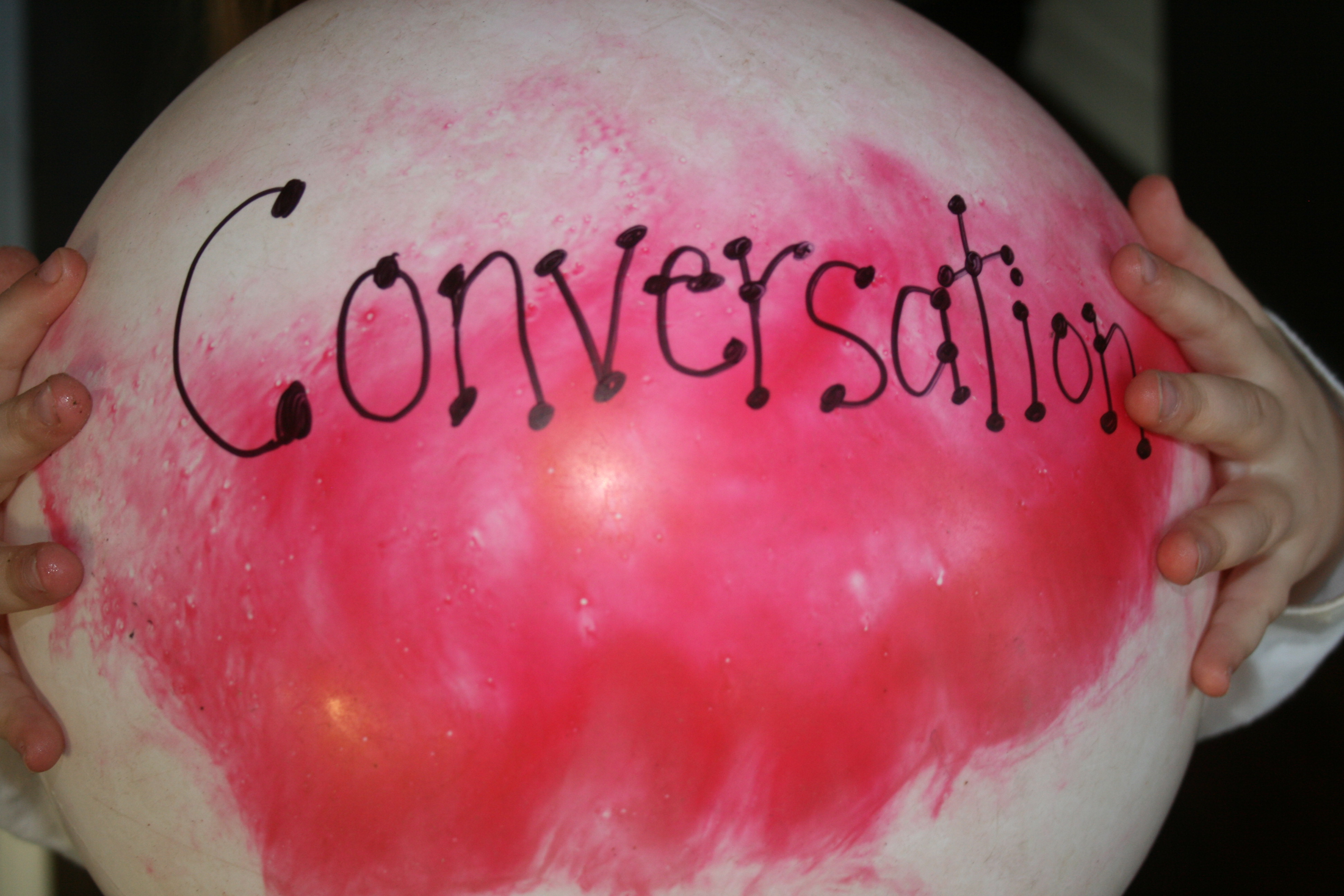 This activity can be practiced simply by grabbing a ball and playing the “Conversation Game”.  The person with the ball asks a question or makes a statement to one of the other players and then passes the ball to them.   The person with the ball can only pass the ball when they ask a question or make an engaging statement.