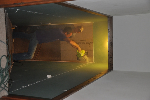 Next, the basement!  We had to remove anything that hung below the floor, so that meant removing the walls…and the stairs.  This got a bit MeSsY!