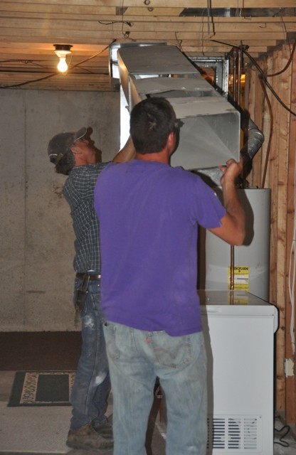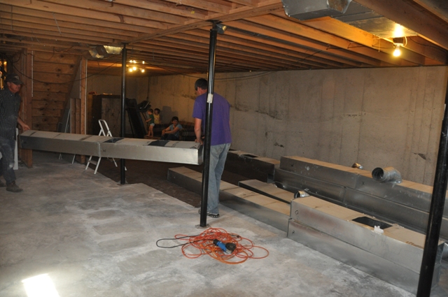 And all the ventilation…luckily my Dad suggested that we mark all of the vents and the floor joists with letters, so it would be eAsiEr to hang back up.  Boy was he right!  Doug and I were able to get them hung on a Sunday afternoon after the house was on the new foundation! Yeah!