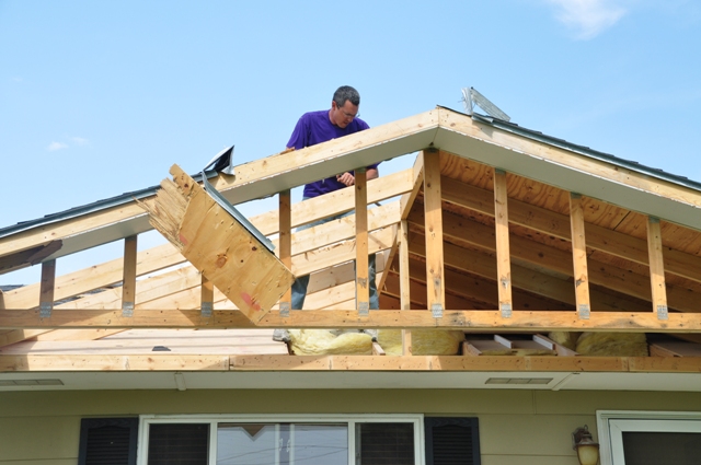 In order to MOVE our house, we had to change the overall shape so it could travel a little easier :).  First, we had to rEmoVe our mudroom/sunroom area.  We were bummed because we finished it a few years ago.  It felt a little weird tearing it down so soon!