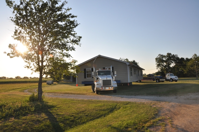 Looking south, with the house on the truck, ready to move!