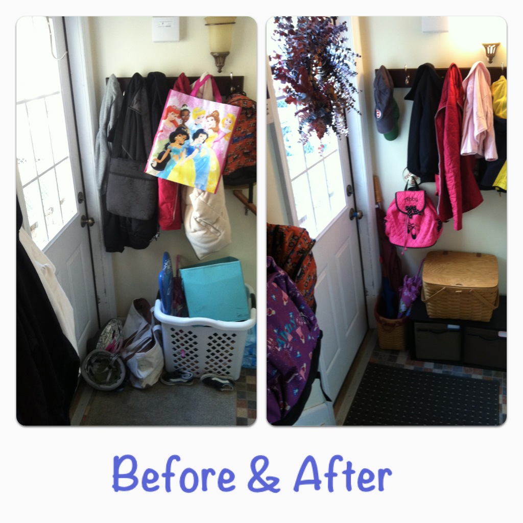 So as I was tripping out my backdoor on Monday…and when I say tripping, I mean my foot got caught in the strap of a beach bag that had been sitting in the doorway for over a month…I decided that this was the day I was finally going to TaKe BaCk My HoUse! As you can clearly see from my before picture, possibly I have been spending a little too much time crafting, blogging, playing, facebooking, pinteresting, etc. and not quite enough time keeping things in order around here.  I’m not sure if my foot in the beach bag was what pushed me over the edge or if it was the fear of my coffee spilling over, but who really cares…a two second incident was all it took to make me realize something needed to give.  OK…looking at the before picture…LOTS of things needed to give!
