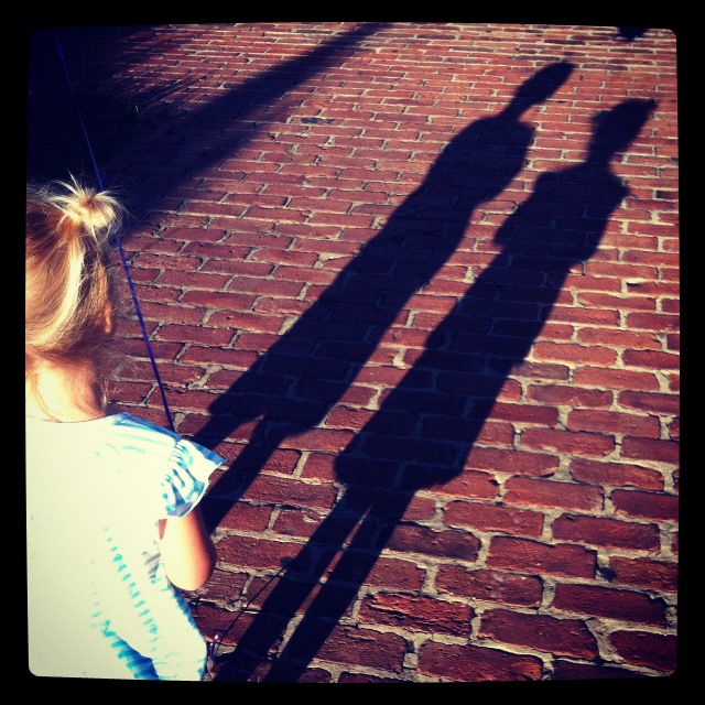 Last night I decided on a whim to take my kids out to dinner to a restaurant that gives out balloons to every kid when they enter the restaurant.  My kids LoVe this and discuss what color balloon they are going to choose the entire car ride there.  As parents it is not such a great perk because we spend most of our meal reminding the kids not to let the balloons touch the ceiling because they can pop, not to let the balloons get caught in the ceiling fans, begging the kids to let us tie the balloons to their chairs, and the list goes on and on and on!  As many of you know my son Nicholas just loves to push the envelope every chance he gets and last night this little game of taunting Mommy with the green balloon was really pushing my last button.  I always tell my kids that they only get ONE balloon at the restaurant whether they lose theirs or if they pop theirs…ONE and that’s it, the rest are for the other kids who come to eat with their families.  When we walked outside to get into our car I decided that I wanted to take a picture of Nicholas and Abby with their balloons.  The sun was in the perfect spot to cast a shadow of their little bodies holding their balloons and I wanted to save that moment.