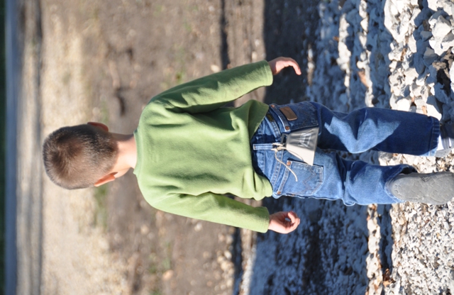 One of the main differences between Garrett and sister, Leanne, is that Garrett has little to no fear.  When that kid decides he wants something, he heads that diRecTion and never looks back.  Because we live in the country, with plenty of land to run around on, you can see how this poses a major problem.  The second we would turn around our little boy would be off eXploRinG, leaving us in a panic not knowing where to look.