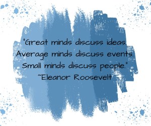 “Great minds discuss ideas. Average minds discuss events. Small minds discuss people.” ~Eleanor Roosevelt