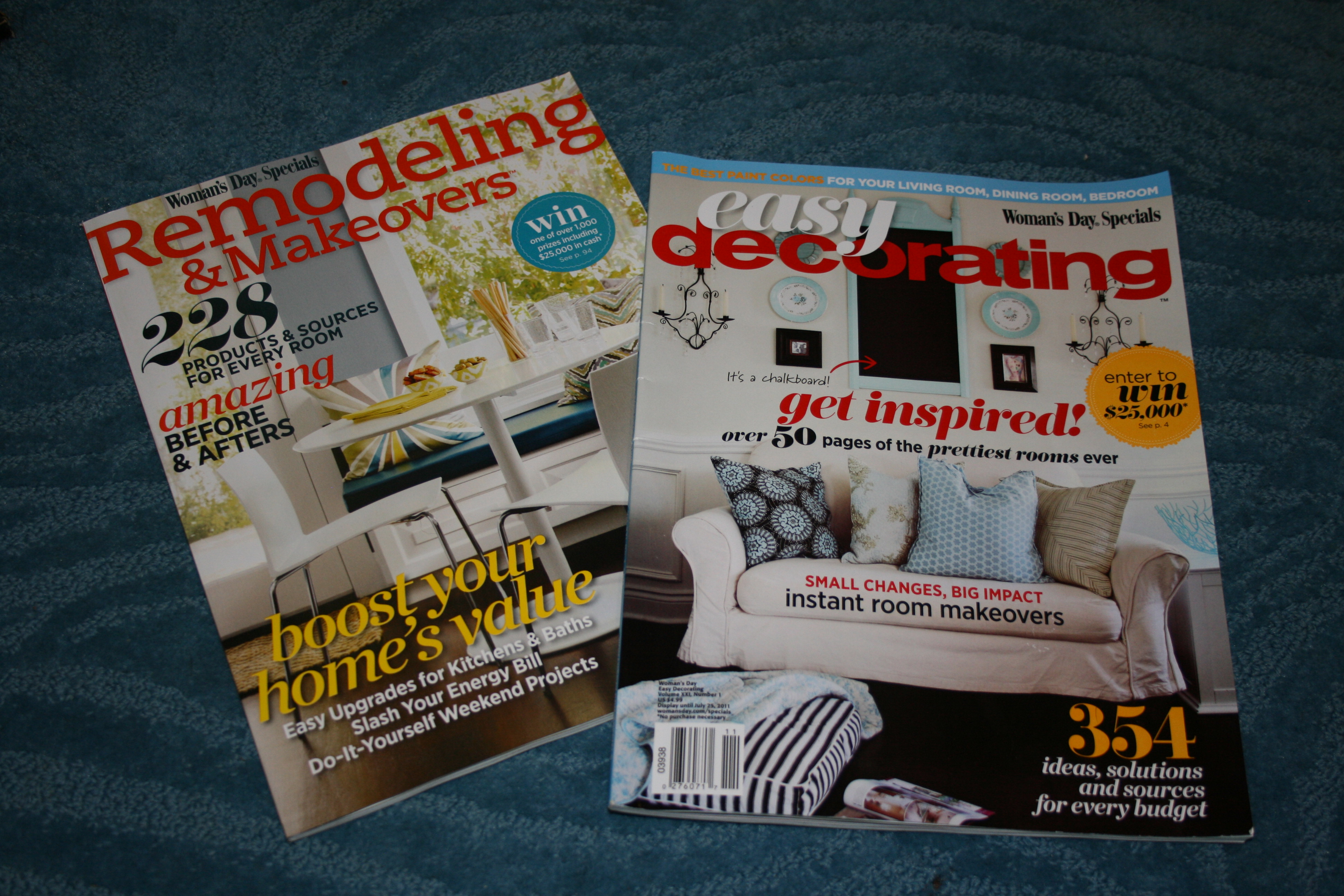 It is a special treat for me to buy one and then carve out a time to enjoy diving in. I love looking at the pictures, reading the interesting bits of information, and looking at the eye-catching titles and subtitles. My favorite ones are those that deal with home & garden, women’s magazines that contain household tips and recipes, ones that contain interesting places, and magazines that are motivating and inspirational. Any time I find something that jumps out at me I rip it out and put it in a basket. From time to time I take these magazine pages out to enjoy once again. I’ve even put some of these pages in plastic sheet protectors and then in a 3-ring binder. As a result, I have compiled my own “magazine” chalk full of my favorite articles, photos, and covers!