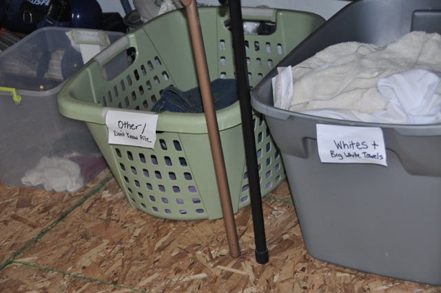 The straw that broke the camel’s back was when we noticed some of our clothes smelling bad, even after being washed. Since I didn’t have a good laundry system all of our clothes, musty towels and kitchen washcloths would sometimes end up in the same load. What happens when you don’t do a good job sorting? Your shirt smells like the onion you made for dinner last night :-/
